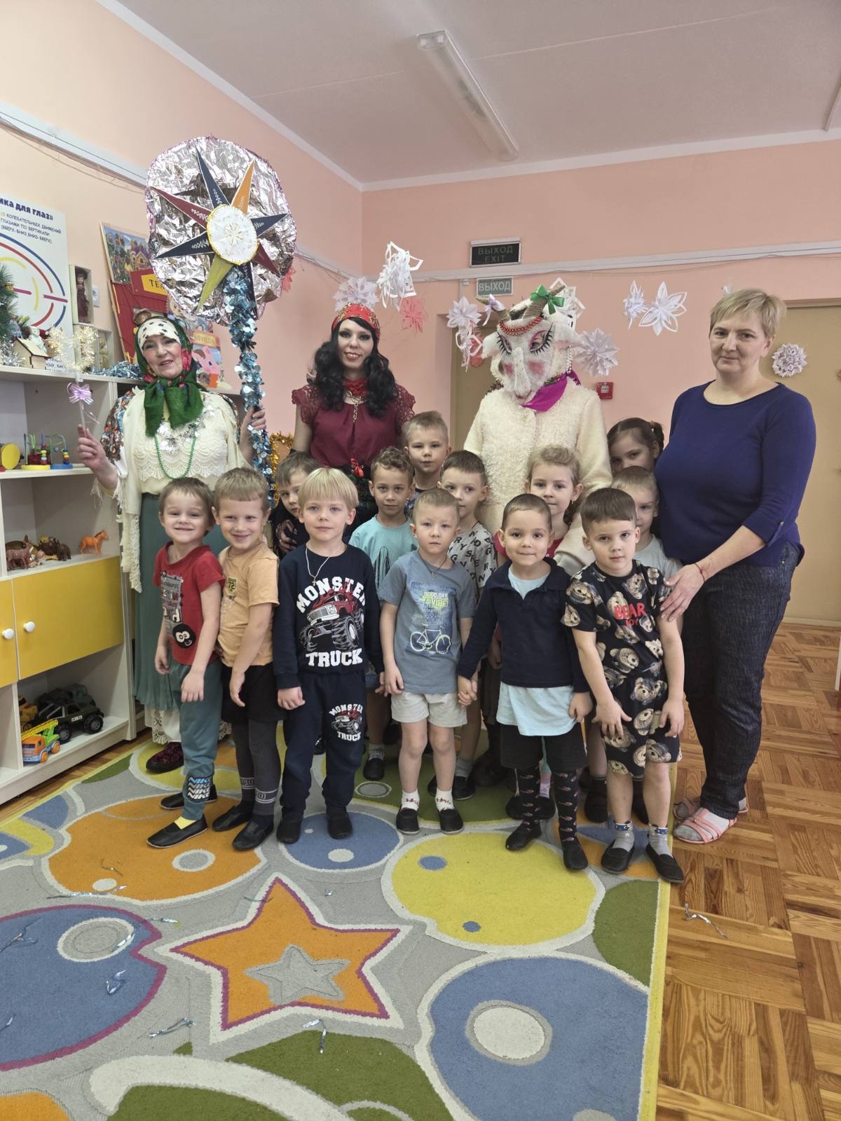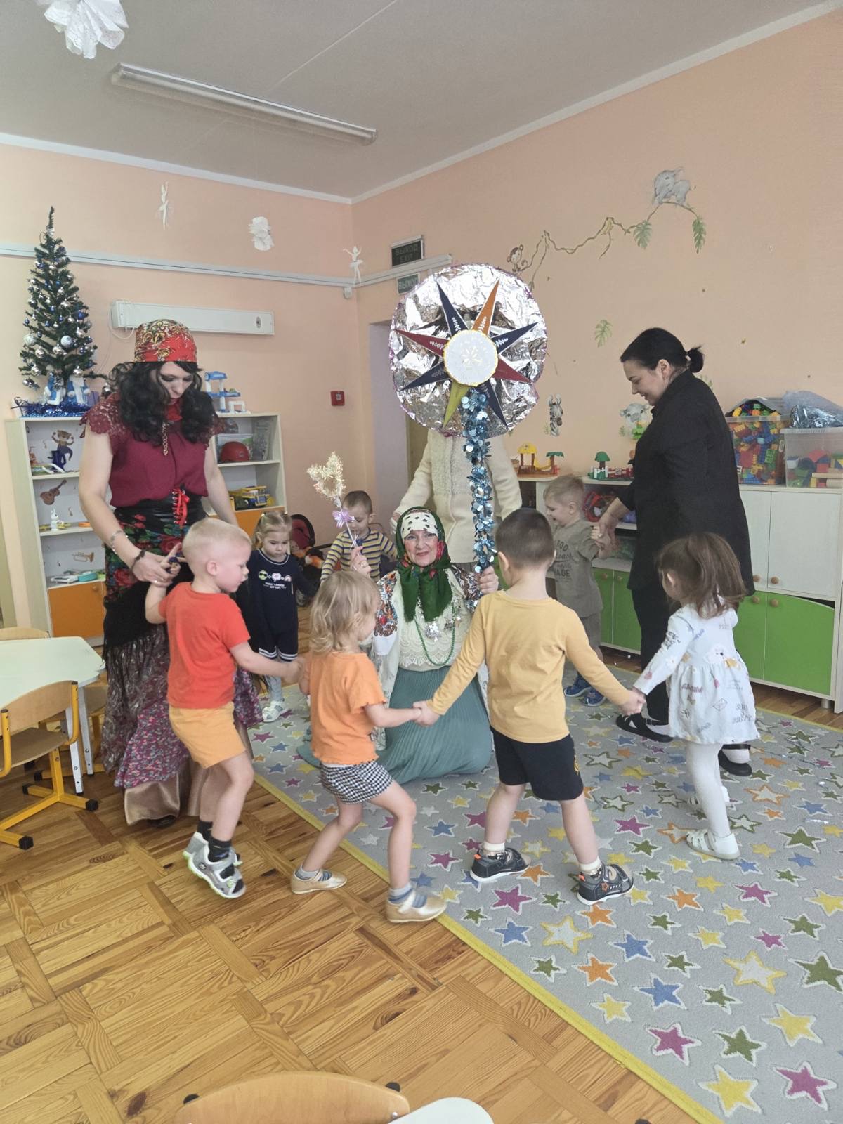 В дошкольном центре развития ребенка «Звездочка» прошло развлечение «Коляды». Коляды — древний обрядовый праздник, у славян символизирующий начало нового года. К Колядам приурочены колядные обходы: переодетые колядовщики (ряженые) обходят дома с песнями, танцами и добрыми пожеланиями.